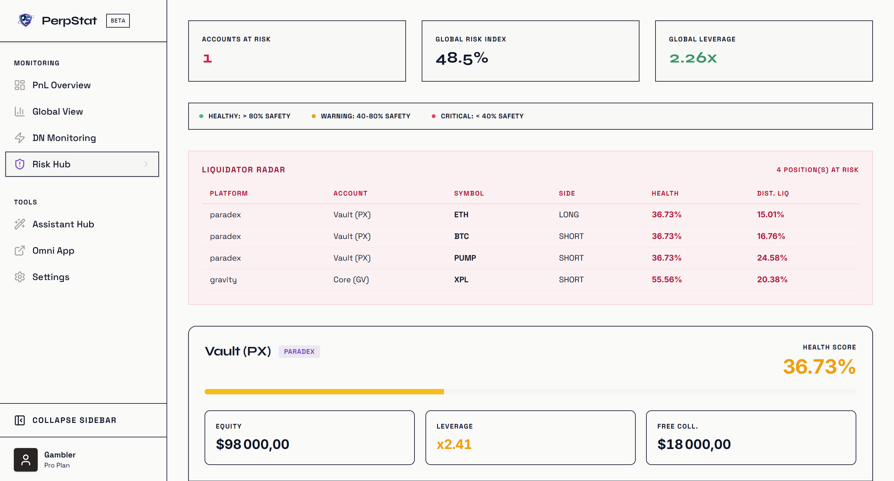 The ultimate multi-platform dashboard for monitoring Perps and Delta Neutral strategies. Understand the problem, avoid the loss.